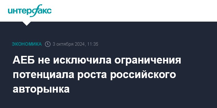 Москва. 3 октября. INTERFAX.RU - Замедление российского авторынка, наблюдаемое в III квартале 2024 года, может свидетельствовать об ограничении потенциала его роста, считают в Ассоциации европейского бизнеса (АЕБ).