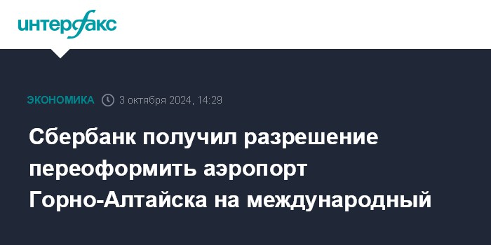 Сбербанк получил разрешение переоформить аэропорт Горно-Алтайска на международный