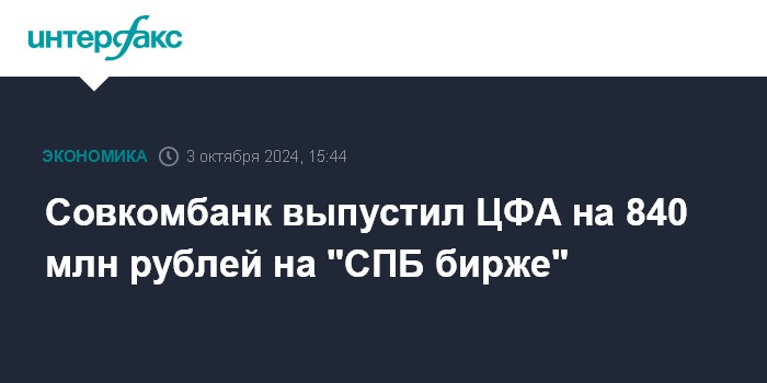 Совкомбанк выпустил ЦФА на 840 млн рублей на "СПБ бирже"