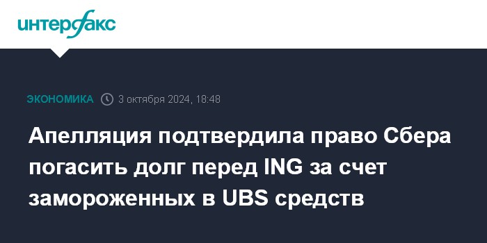 Апелляция подтвердила право Сбера погасить долг перед ING за счет замороженных в UBS средств