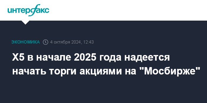Х5 в начале 2025 года надеется начать торги акциями на "Мосбирже"