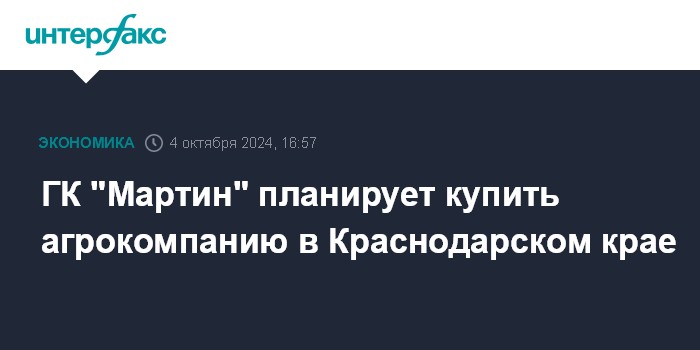 ГК "Мартин" планирует купить агрокомпанию в Краснодарском крае