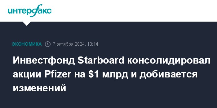 Инвестфонд Starboard консолидировал акции Pfizer на $1 млрд и добивается изменений