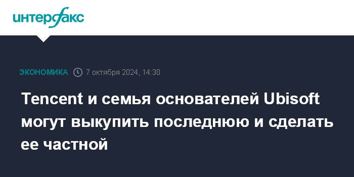 Tencent и семья основателей Ubisoft могут выкупить последнюю и сделать ее частной