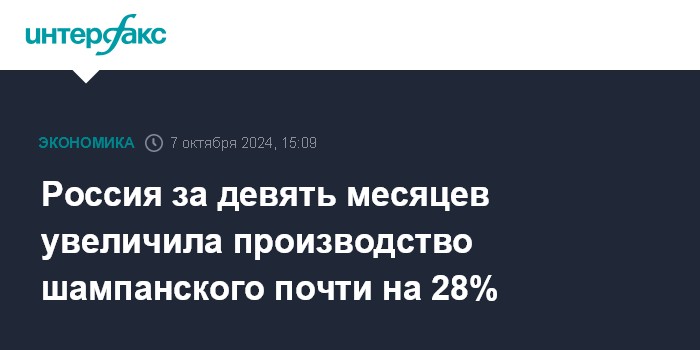 Россия за девять месяцев увеличила производство шампанского почти на 28%