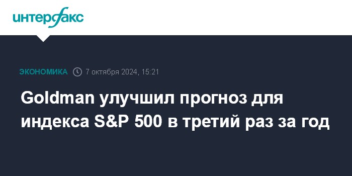 Goldman улучшил прогноз для индекса S&P 500 в третий раз за год