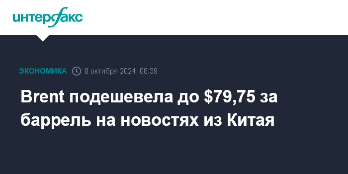 Brent подешевела до $79,75 за баррель на новостях из Китая