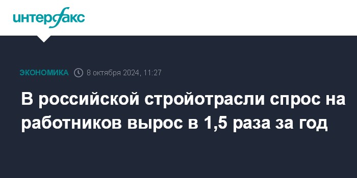 Москва. 8 октября. INTERFAX.RU - В России в сфере строительства спрос на работников за год вырос в 1,5 раза, выяснили в "Авито Работа".
