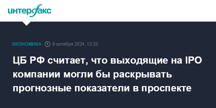 ЦБ РФ считает, что выходящие на IPO компании могли бы раскрывать прогнозные показатели в проспекте