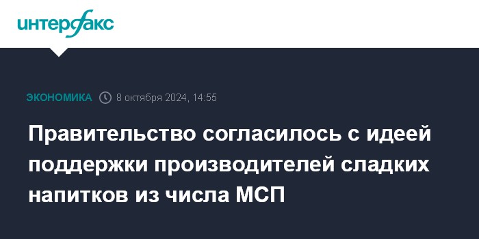 Правительство согласилось с идеей поддержки производителей сладких напитков из числа МСП