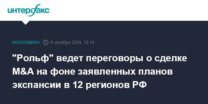 "Рольф" ведет переговоры о сделке M&A на фоне заявленных планов экспансии в 12 регионов РФ