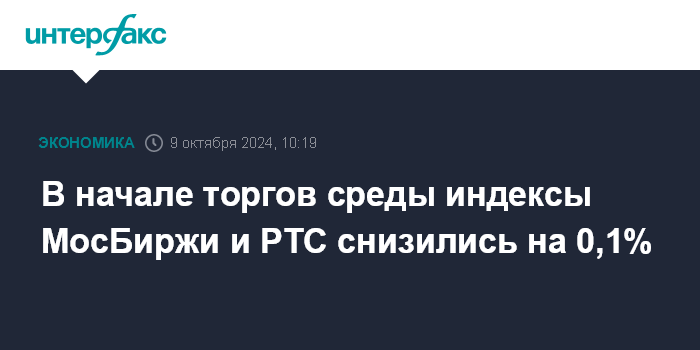 В начале торгов среды индексы МосБиржи и РТС снизились на 0,1%