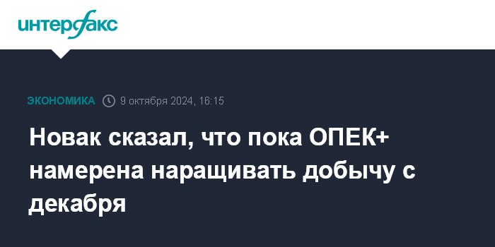 Новак сказал, что пока ОПЕК+ намерена наращивать добычу с декабря