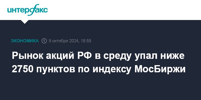 Рынок акций РФ в среду упал ниже 2750 пунктов по индексу МосБиржи