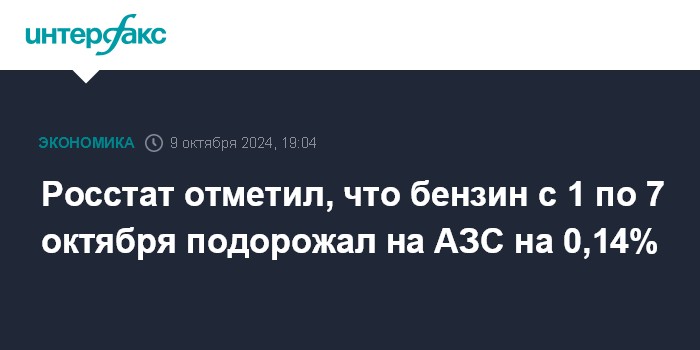 С начала года к 7 октября бензин подорожал на 7,9% (общая инфляция за этот период составила 5,87%).