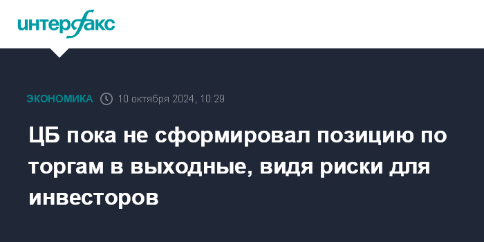 ЦБ пока не сформировал позицию по торгам в выходные, видя риски для инвесторов