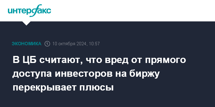 В ЦБ считают, что вред от прямого доступа инвесторов на биржу перекрывает плюсы