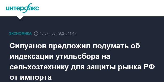 "Нужно защитить наш рынок от таких вот льготных поставок сельхозтехники из других стран. Для это есть у нас все инструменты. В первую очередь, это утильсбор, деньги от которого пойдут, в том числе, на поддержку нашего сельхозмашиностроения. Кстати, если мы посмотрим на динамику утильсбора, которую мы предусмотрели на последующие годы - она по сути дела стоит на месте. Мы видим, что ставки утильсбора с 2024 года по 2030 год на комбайны зерноуборочные, на машины сельхозназначения самоходные - ставки те же самые, они даже не индексируются. Мне кажется, нужно здесь, во-первых, поработать над бюджетом ко второму чтению. И второе - рассмотреть в правительстве вопрос о ставках утильсбора. С одной стороны, как о защитной мере от льготного импорта, а с другой - для направления ресурсов от этого источника на поддержку отечественных сельхозтоваропроизводителей", - предложил глава Минфина.