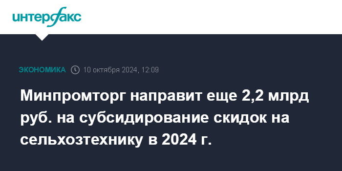 "Мы, конечно, не можем закрывать на эту ситуацию глаза и в качестве такого оперативного решения предлагаем до конца года дополнительно направить на программу субсидирования скидок на сельхозтехнику – так называемое постановление №1432 – дополнительно 2,2 млрд рублей за счет средств экономии, которые мы изыскали в бюджете Минпромторга.", - сообщил глава ведомства.