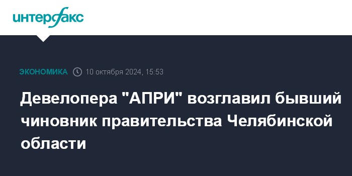 Девелопера "АПРИ" возглавил бывший чиновник правительства Челябинской области