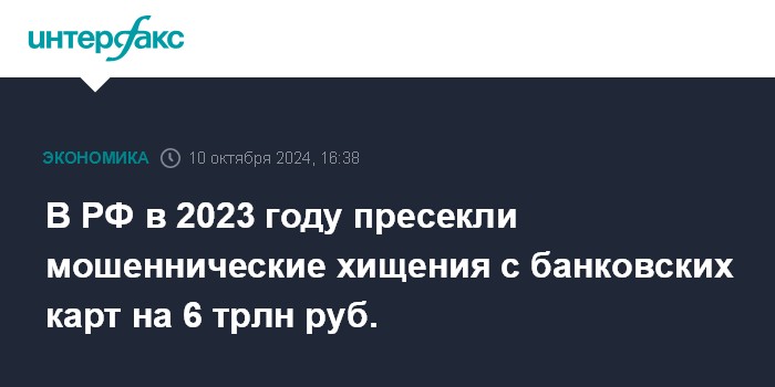 В РФ в 2023 году пресекли мошеннические хищения с банковских карт на 6 трлн руб.
