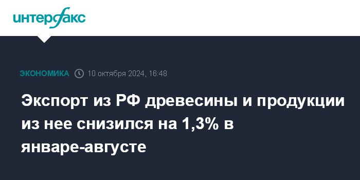 Экспорт из РФ древесины и продукции из нее снизился на 1,3% в январе-августе