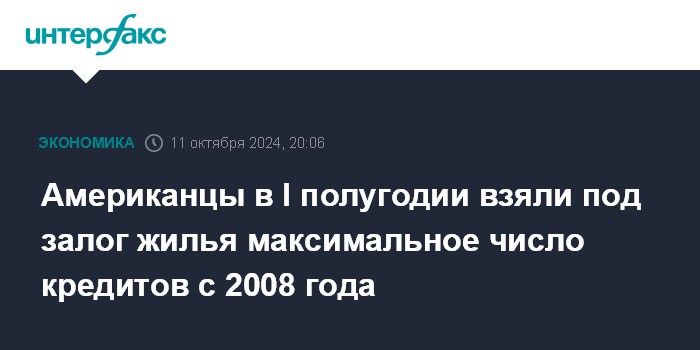 Москва. 11 октября. INTERFAX.RU - В первом полугодии 2024 года граждане США взяли рекордное с финансового кризиса 2008 года количество кредитов под залог собственной жилой недвижимости на фоне роста цен на дома, пишет MarketWatch со ссылкой на данные компании CoreLogic.