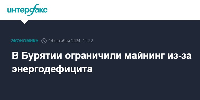 Москва. 14 октября. INTERFAX.RU - Правительство Бурятии сообщило, что из-за энергодефицита в регионе ограничило майнинг криптовалют.