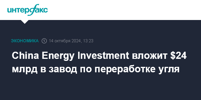 China Energy Investment вложит $24 млрд в завод по переработке угля