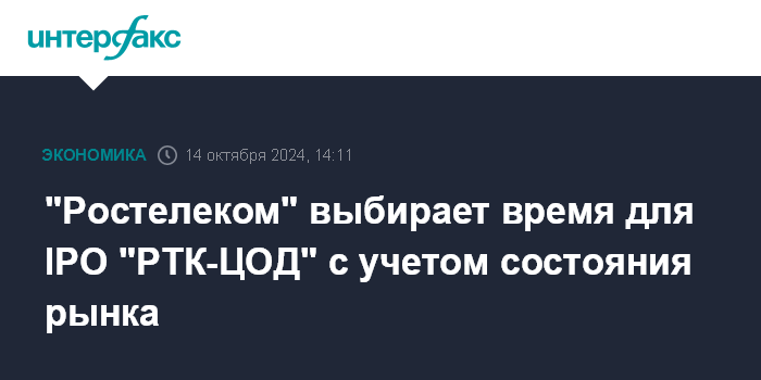 "Ростелеком" выбирает время для IPO "РТК-ЦОД" с учетом состояния рынка