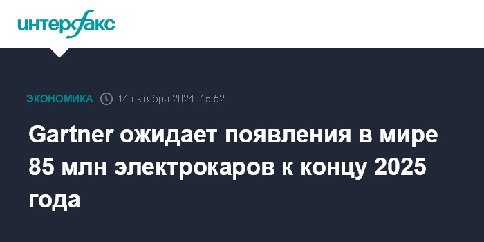 "Несмотря на ряд проблем, с которыми столкнулся рынок электромобилей в последние месяцы, мы прогнозируем увеличение их числа на 33% в 2025 году", - отметил старший директор по аналитике в Gartner Джонатан Дэвенпорт.