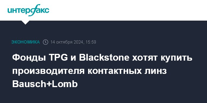 Москва. 14 октября. INTERFAX.RU - Американские инвестиционные компании TPG и Blackstone планируют направить совместное предложение о покупке канадского производителя контактных линз и офтальмологических препаратов Bausch + Lomb Corp., пишет Financial Times со ссылкой на источники.