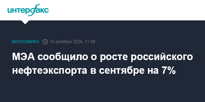 МЭА сообщило о росте российского нефтеэкспорта в сентябре на 7%
