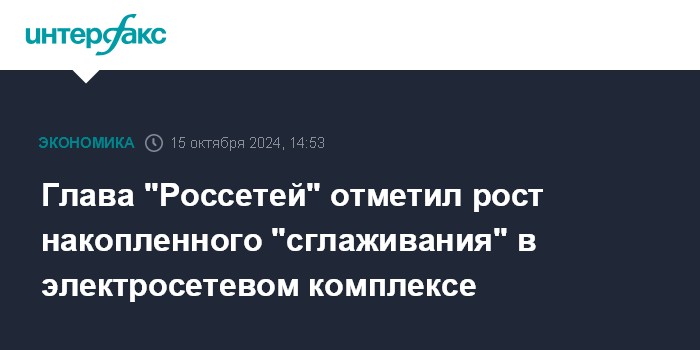 Москва. 15 октября. INTERFAX.RU - Объем накопленного "сглаживания" в электросетевом комплексе сейчас превышает 130 млрд руб., сообщил на тарифной конференции ФАС глава "Россетей" Андрей Рюмин.