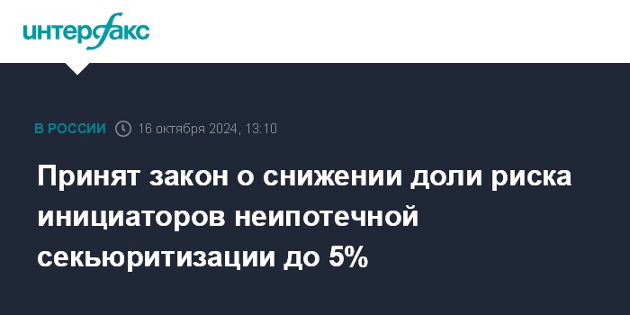 Принят закон о снижении доли риска инициаторов неипотечной секьюритизации до 5%
