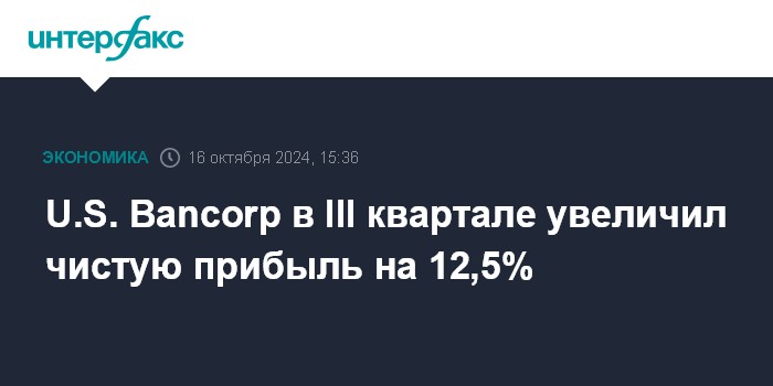 U.S. Bancorp в III квартале увеличил чистую прибыль на 12,5%