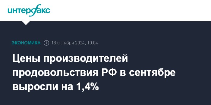 Цены производителей продовольствия РФ в сентябре выросли на 1,4%