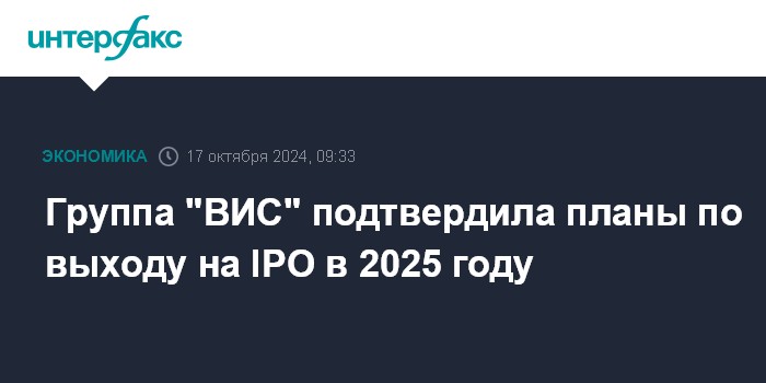 Группа "ВИС" подтвердила планы по выходу на IPO в 2025 году