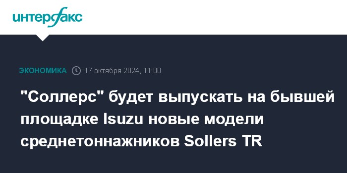 Москва. 17 октября. INTERFAX.RU - Российская автомобилестроительная группа "Соллерс" сообщила о старте предзаказов на новое семейство среднетоннажников Sollers TR, которые будут выпускаться на площадке ООО "Соллерс Комтранс" (ранее - АО "Исузу Рус") в Ульяновске.