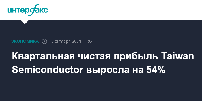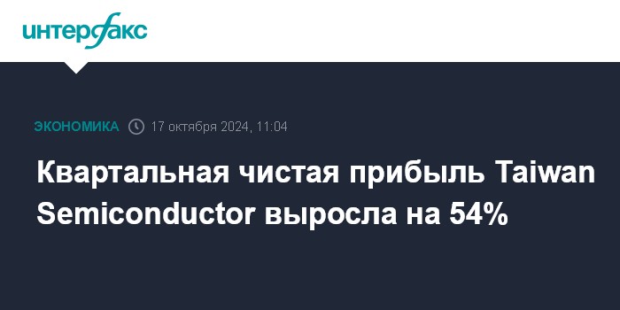 Москва. 17 октября. INTERFAX.RU - Ведущий мировой производитель микросхем на заказ Taiwan Semiconductor Manufacturing Company в третьем квартале 2024 года увеличил чистую прибыль на 54,2% - до рекордных 325,258 млрд новых тайваньских долларов ($10,1 млрд), сказано в отчетности компании.