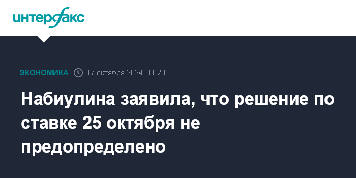 Набиулина заявила, что решение по ставке 25 октября не предопределено