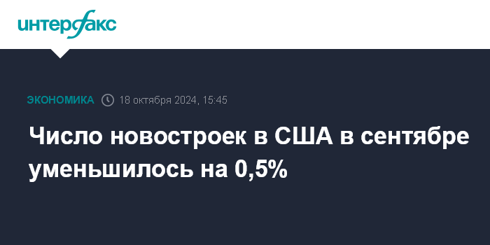 Число новостроек в США в прошлом месяце было на 0,7% ниже, чем в сентябре 2023 года.