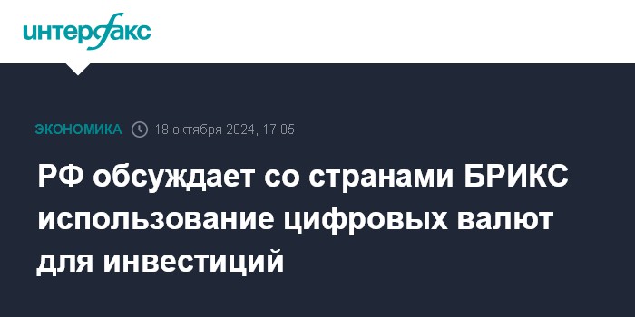 РФ обсуждает со странами БРИКС использование цифровых валют для инвестиций