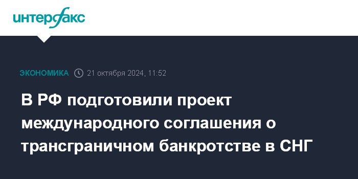В РФ подготовили проект международного соглашения о трансграничном банкротстве в СНГ