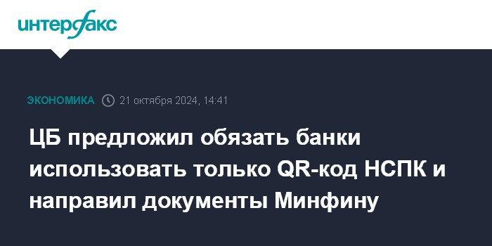 ЦБ предложил обязать банки использовать только QR-код НСПК и направил документы Минфину