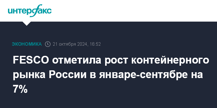 FESCO отметила рост контейнерного рынка России в январе-сентябре на 7%