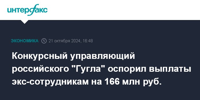 Конкурсный управляющий российского "Гугла" оспорил выплаты экс-сотрудникам на 166 млн руб.