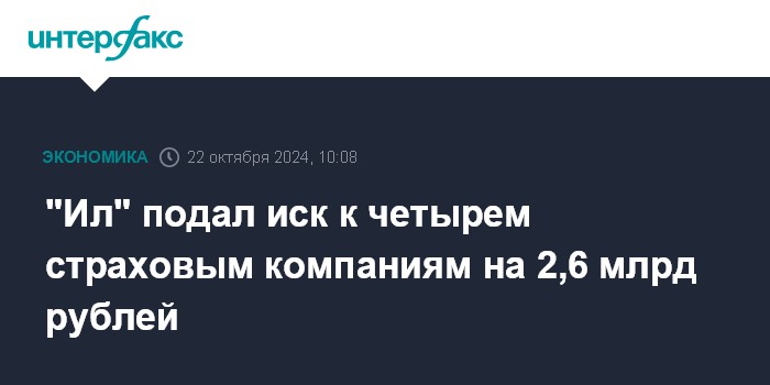 "Ил" подал иск к четырем страховым компаниям на 2,6 млрд рублей