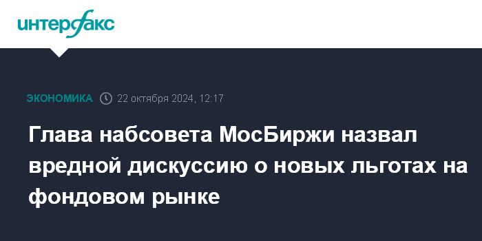 Глава набсовета МосБиржи назвал вредной дискуссию о новых льготах на фондовом рынке