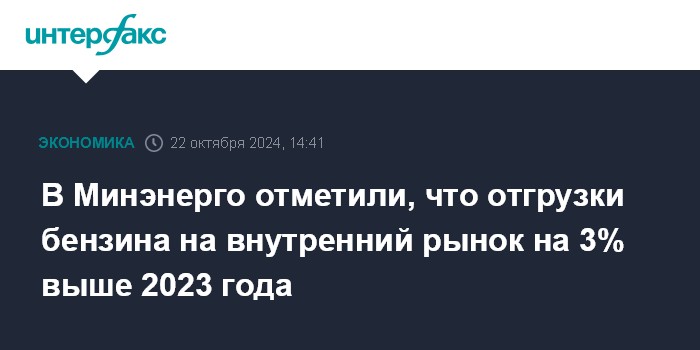 В Минэнерго отметили, что отгрузки бензина на внутренний рынок на 3% выше 2023 года